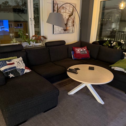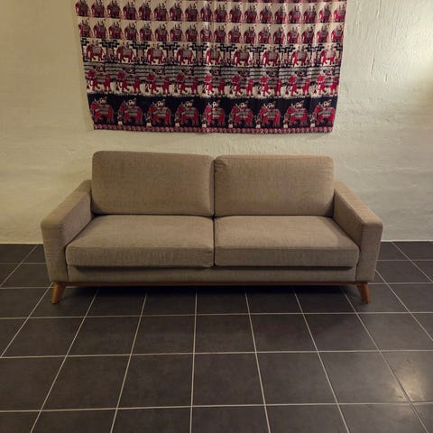 En tresits SAVOY soffa med lös fotpall. Livorno tyg i färgen antracit. Köpt 2020 på TIB-möbler/em home. Kvitto finns.