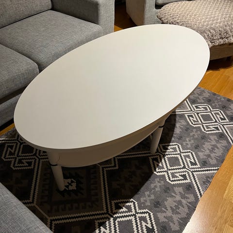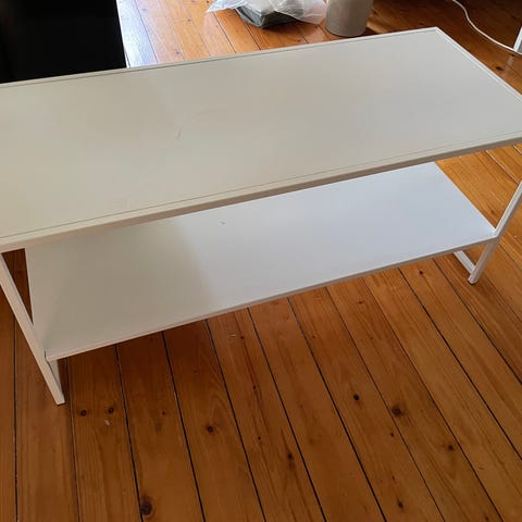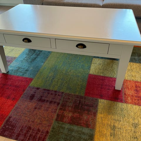 Smilla är ett lättplacerat soffbord med modernt utseende, ben i metall! Undertill finns en förvaringshylla för tidningar. Bordet är tillverkat i MDF och har målats om till vit.