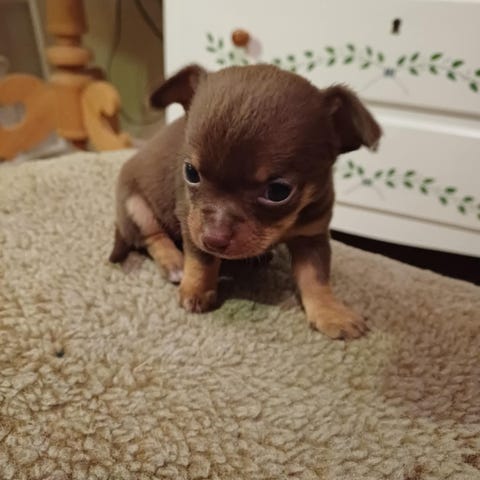 Mamman är långhårig chihuahua, och pappan kanintax/chihuahua.