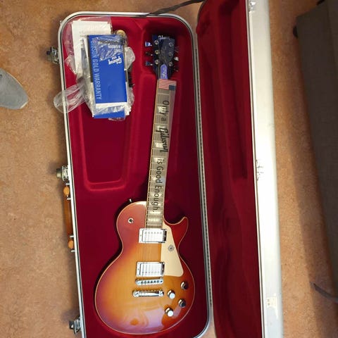 Hardcase och Gibson gitarrem svart läder medföljer.