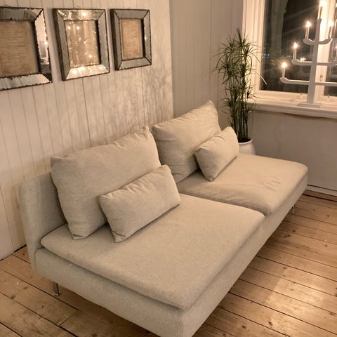 Säljer min schäslong från IKEA ur serien Söderhamn. Kan monteras samman med andra delar ur samma serie och bilda en soffgrupp. Tyget är slitet just på ovansidan, se bild. Därav det låga priset. Utöver tyget är den i fint skick.