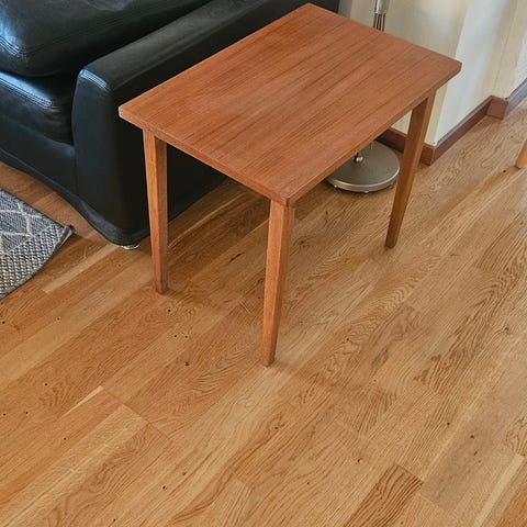 Mindre teakbord med lite slitage men det är stabilt och enligt mitt tycke rätt fint 👍🏻