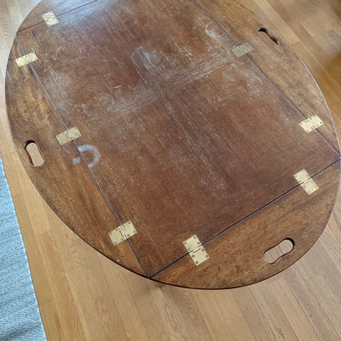 Ett par av skepparbord/ klaffbor, det större med flertalet värmemärken men som säkert kan fixas av den händige.