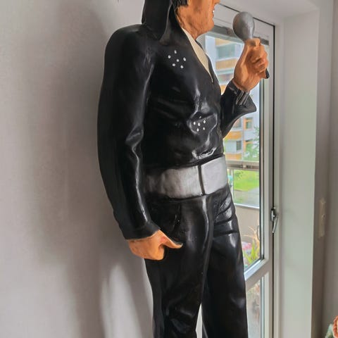 Elvis Presley Tavla med motiv från albumet He Dared to Rock. Tavlan visar bilder av Elvis Presley tillsammans med gitarrer och text. Färgtoner domineras av brunt och svart. Tavlans mått är ca. 1m×1m