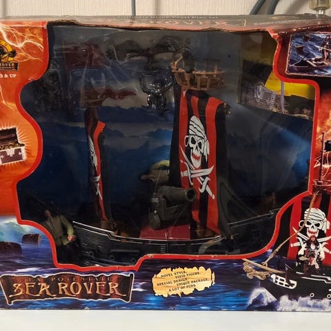 Piratskepp från Dickie Toys med frihjul, ljus och ljud och flera formgjuten bilar.