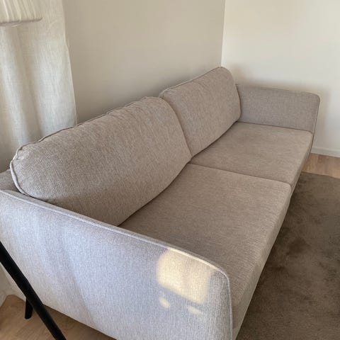 Jag äger en hund och under veckan har jag handtvättat klädseln till soffan (tog sin tid ska du veta!). Soffan är nedsutten vid vissa partier, detta går att åtgärda genom att puffa och slå. Soffan är 5 år gammal.