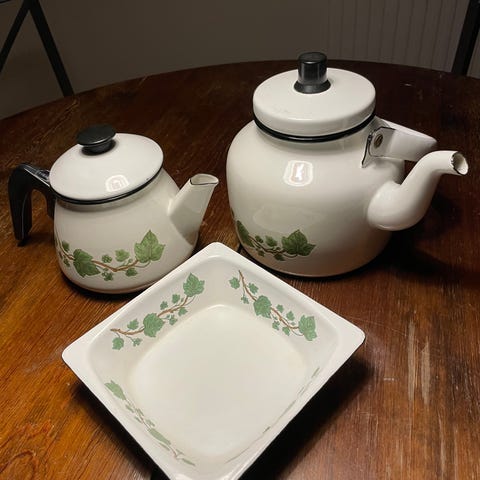 Kockums Sweden (stämplar på botten) emaljföremål: