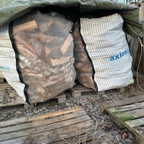 Torr ved i säck