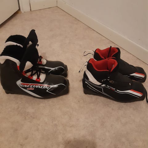 Svarta Salomon RC Junior Prolink längdpjäxor storlek 36 2/3, innermått ca 22,5 cm.