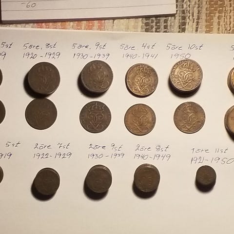 2 öre 1874-1907 mynt samling 25st olika årtal