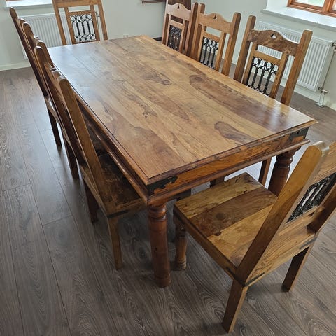 Säljer mitt fina ovala matbord i mycket fint skick inga repor eller skador den är som ny med tillhörande stolar av stålben. Komplett med bord och 4 st stolar för endast 1.400kr