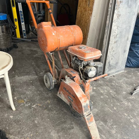 Lerpeviken GS34 golvsåg med elektrisk motor och hjul för enkel förflyttning. Används för kapning av golv och liknande material.