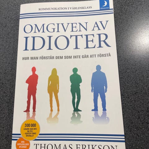 Thomas Erikson Omgiven av idioter Bok. En bok som behandlar olika personlighetstyper och hur man kan förstå och kommunicera med människor med olika beteenden.