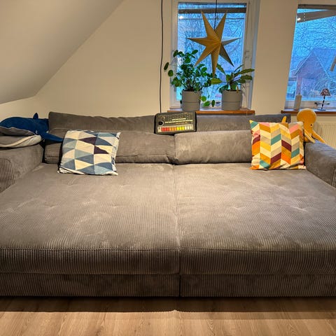 Den är i toppskick och jag rekommenderar starkt att ni köper den. Jätte skön att sitta i och ännu skönare att ligga raklång i. Passar perfekt om ni har kille/tjej och vill gosa ner er eller om ni vill ha en bastant pjäs i vardagsrummet.