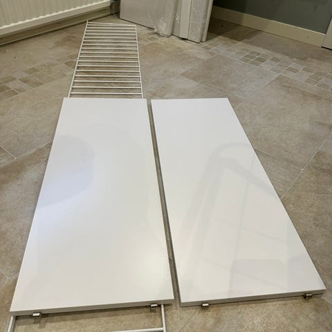 Säljer mina resterande hyllor och arbetsskiva som inte används efter flytten