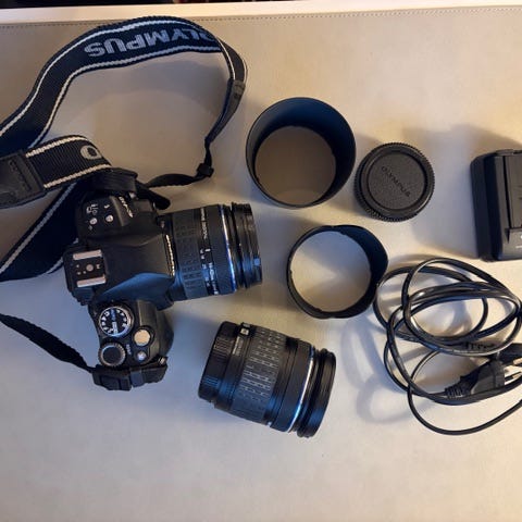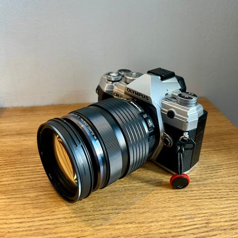 Olympus OM-D Digital em 1 systemkamera med objektiv och batterigrepp