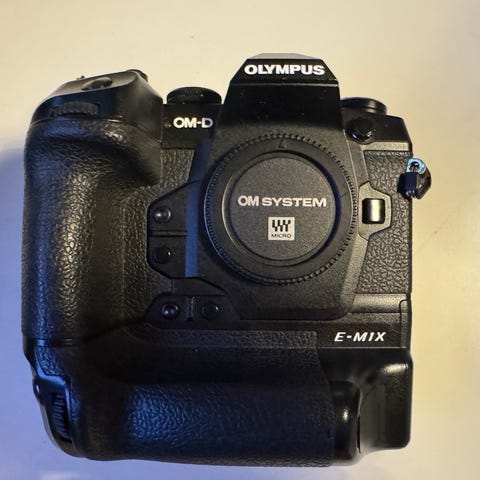 Olympus OM-D em1 digital systemkamera med utbytbart objektiv. Kameran har en elektronisk sökare, flera inställningsmöjligheter och en bakbelyst skärm för bildvisning och menyhantering. Passar för fotografering i olika miljöer och situationer.