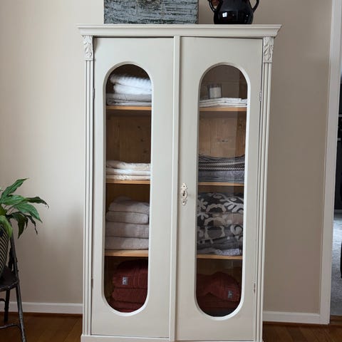 Såldes troligtvis som Linnesskåp men kan givetvis användas till lite vadsom. Rejält byggt och bra kvalité. Det är i ganska bra skick men finns lite faner som har släppt på en yta av 1x2cm.