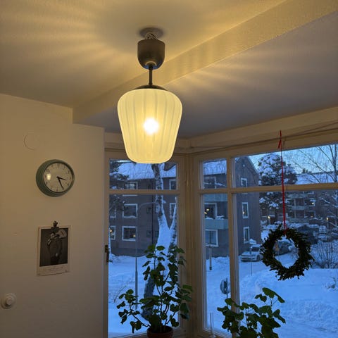 Lampan ger ett behagligt och jämnt ljus och fungerar både som stämningsbelysning och allmänbelysning beroende på val av ljuskällor.