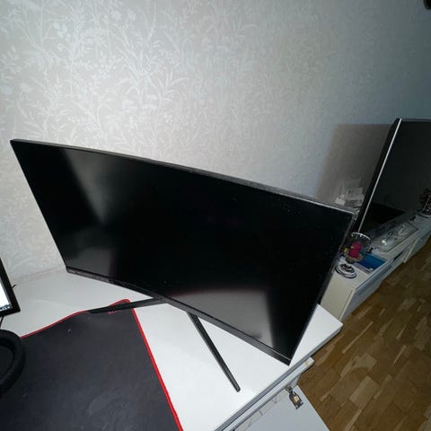 Asus TUF Gaming 27-tums skärm med böjd design. Skärmen är svart och avsedd för spel och allmänt bruk.