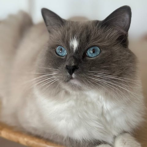 Därför söker vi ett lugnt hem, helst med en liten familj, ett par eller en ensam person, där han kan känna sig trygg. När han väl känner sig bekväm blir han väldigt tillgiven, lojal och nära knuten till sina människor. Han är intelligent, väluppfostrad och har den klassiska Ragdoll-charmen.