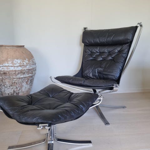 Bruno Mathsson Karin, fåtölj med fotpall