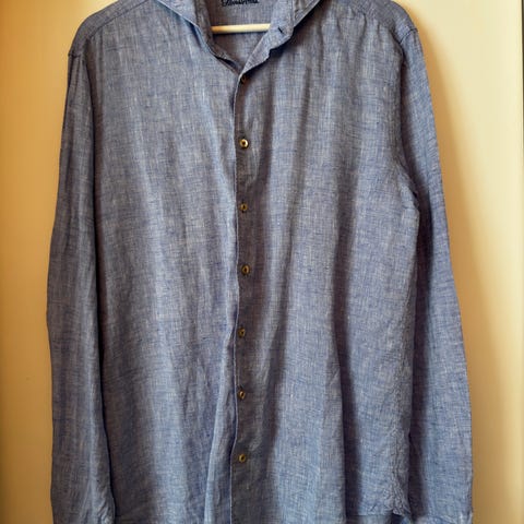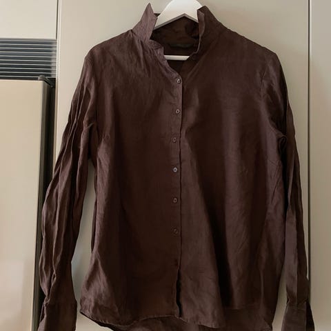 Selected Home linneskjorta, beiga och vitrandiga, bra skick, storlek M
