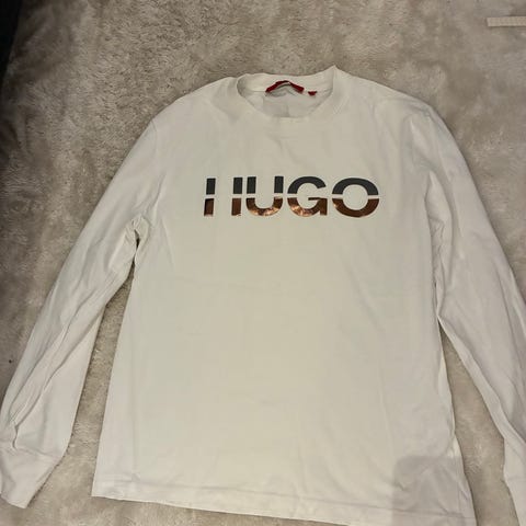 Hugo Boss T-shirt, vit med blå Hugo text på framsidan, storlek M, bra skick