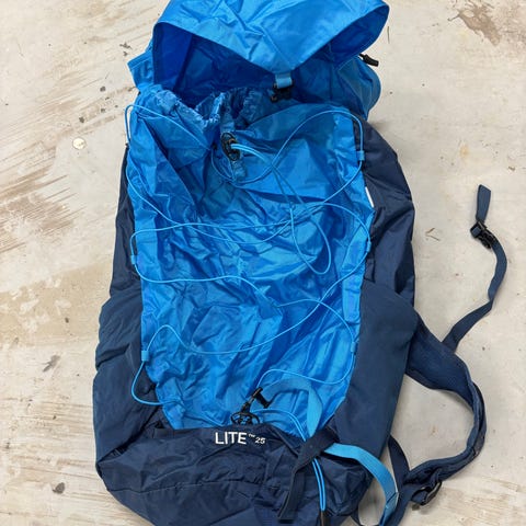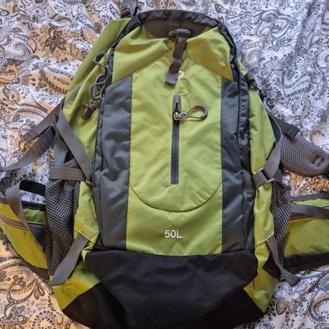 Den har 4 fack på utsidan och ett stort huvudfack. Extra fodral för t.ex sovsäck medföljer.