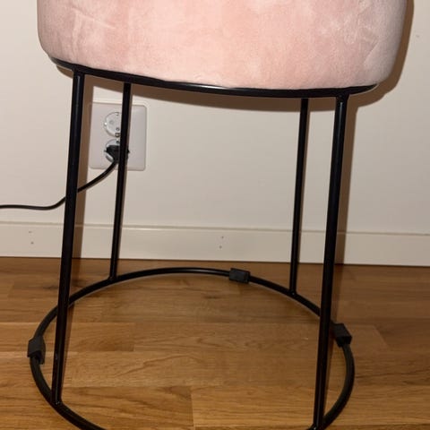 Rosa manchestetyg. Sitthöjd justerbar mellan 52-67 cm.
