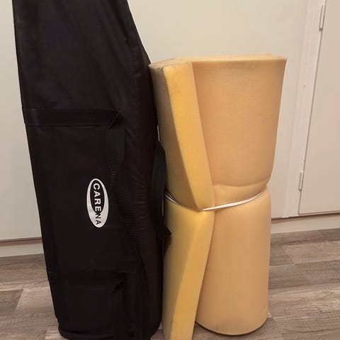 Fin resesäng med madrass. Packas i tillhörande väska. Hämtas I Lund utanför Skellefteå och betalas med swish.