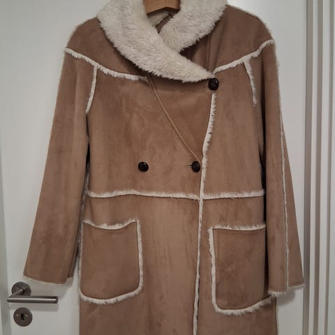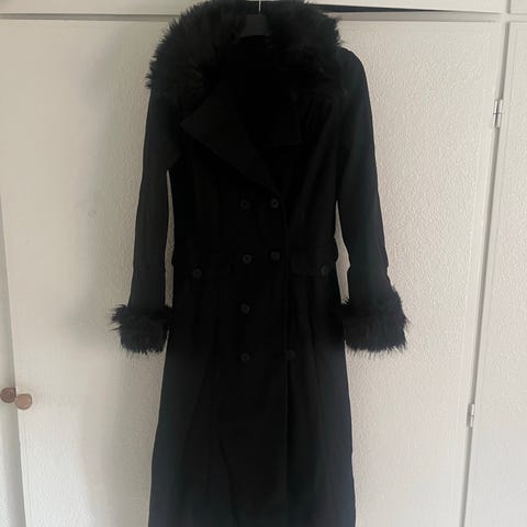 Kappa från Pussy Deluxe med broderade körsbär nedtill. Fuskpäls kragen går att ta bort.