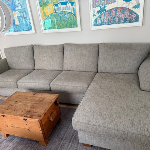Inget slitage på tyg eller dynor, inga missfärgningar, inga skador. Den är i praktiken som ny.