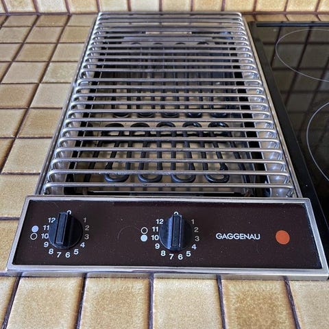 Gaggenau Gashällar med fyra brännare. Tillverkad i rostfritt stål alu look Kontrollknappar placerade fram. Passar för installation i kök för matlagning med gas.
