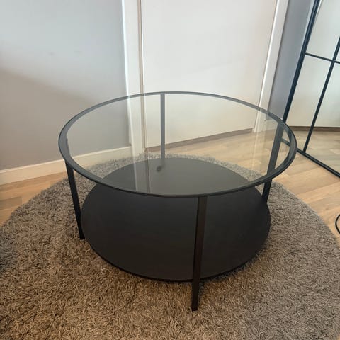Runt bord med marmorerat glas imitation säljes i centrala Hallstavik.