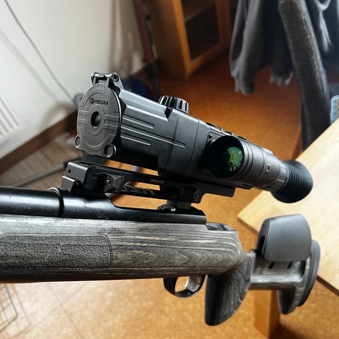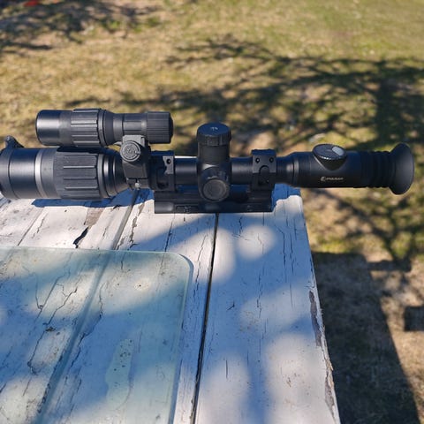 Pulsar Forward F455 nattsikte med tillbehör. Inklusive adapter för snabb montering fram på befintligt kikarsikte i storlek 56mm Har fungerat bra säljes pga köpt termiskt istället.