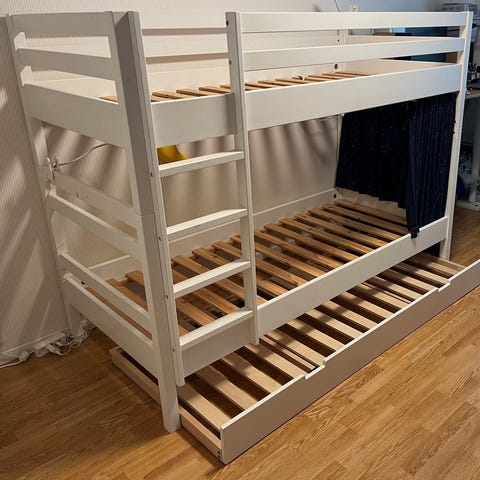 Barn säng som stuga. Går att stänga in sig med dörrar. Väldigt mysigt och roligt för barn. Bra kvalitet och tål att bära tungt.