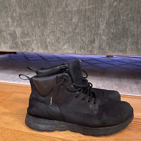 Ett par nya Timberland vinterskor i storlek 44, färg svart. Skorna är utformade för vinterbruk och har en slitstark sula med bra grepp. Insidan är fodrad för att ge värme och komfort vid kalla förhållanden. Nypris ca 1000 kr.