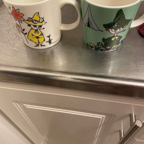 2 Mumin muggar i nyskick med etikett.