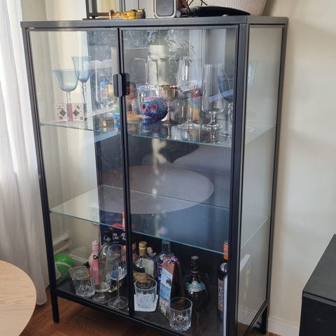 Vitt väldigt fint vitrinskåp/skåp till salu i Bromma (Traneberg). 6 luckor med totalt 12 hyllplan. Perfekt blandning av vitrinskåp (4 hyllor) och skåp för förvaring (8 hyllor).