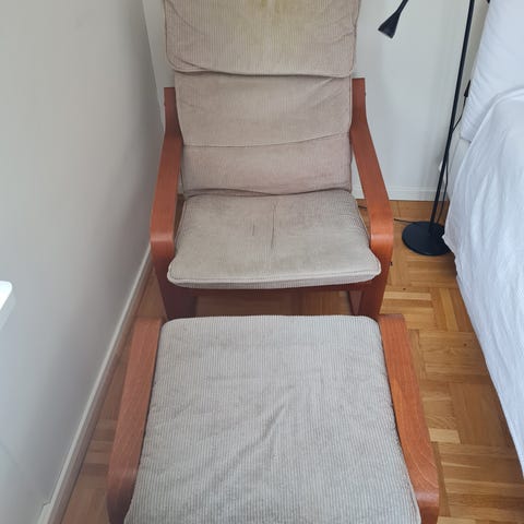 En fungerande fåtölj med tillhörande fotpall säljas till gebort pris, 300kr