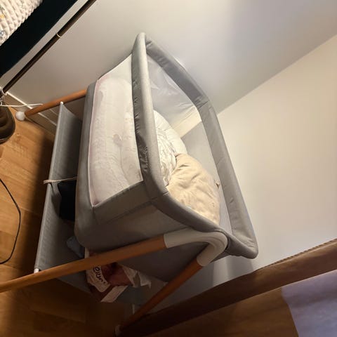 Kinderkraft utdragbar barnsäng i trä. Sängen är designad för barn och kan justeras i storlek genom utdragbar funktion för att anpassas efter barnets växande behov.