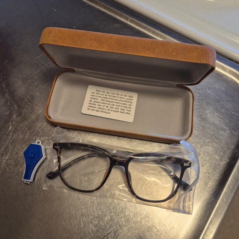 Glasögon med blåljusfilter, designade för att skydda mot skadligt blått ljus och UV-strålning. Levereras med ett praktiskt fodral. Helt nya och kostar då 177kr.