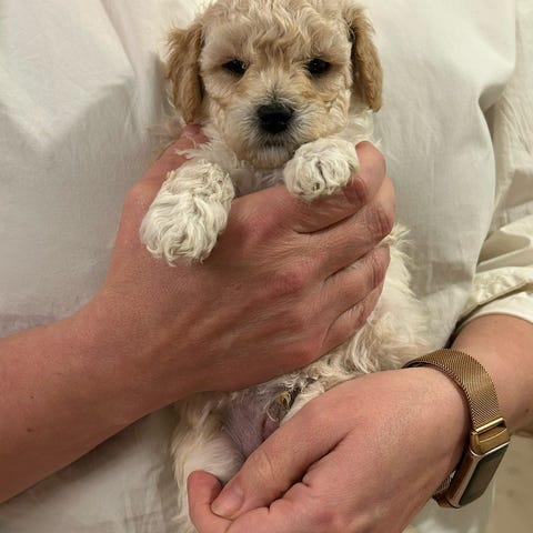 Mamma: aprikos dvärgpudel (30 cm, finns i hemmet)