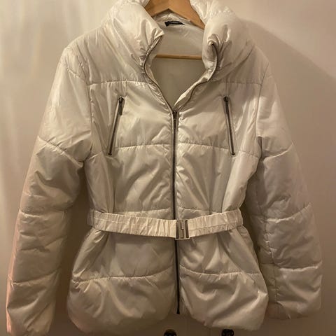 V kollektion, damjacka i svart färg med en avtagbar pälskrage. Jackan är vadderad och har flera fickor med knappar och dragkedjor. Passar för kallare väder och har en justerbar midja för bättre passform.