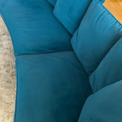 Gråbeige lätt svängd soffa Mirage från Mio i sammetstyg i fint fläckfritt skick säljes pga flytt.