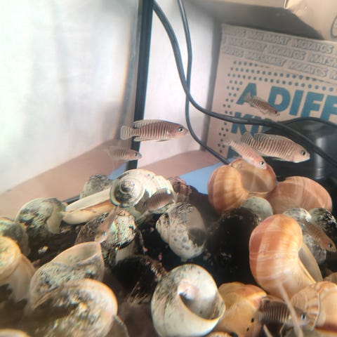 Jag har ett par channa som jag hade de som var 5cm men nu jag har inte tid att ta hand om dem längre dom är nu nästan 22cm med en akvarium 120 l