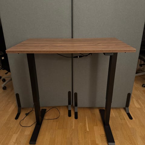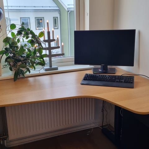 Fint höj- och sänkbart skrivbord från Ikea, modell "Bekant" med svarta ben och förvaring under