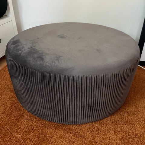 Puffen höjd 34cm diameter 50cm, lampskärm höjd 21cm diameter 38cm