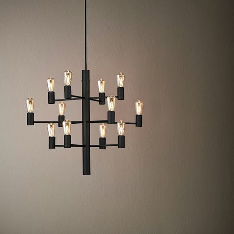 Manola 12 ljuskrona från Herstal med en elegant formgivning med en ram i metall, tolv armar och medföljande LED-ljuskällor.